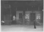 Abstract: Fotografia in bianco e nero con bordini bianchi. Merano. Habsburgerstraße sup. (odierno Corso Libertá), vicino a Torre Bolzano. A dx dell'immagine il sarto Valentin Tonnini, l'uomo più piccolo della città, di fronte al negozio di "Siegfried Anegg" - Landesprodukte & Südfrüchte / prodotti nazionali & frutta del sud.