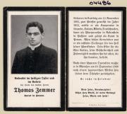 Abstract: Sterbebild von Thomas Zemmer, Kurat in Pennon Geb. am 13.11.1891 in Kurtinig, gest. am 19.09.1938 in München mit Foto