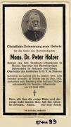 Abstract: Sterbebild von Mons. Dr. Peter Holzer, Rektor des feb. Seminars Johanneum in Dorf Tirol, Superior der Barmherzigen Schwestern in Bozen und Gries, Oberleiter des INstitutes B.M.V. in Meran Geb. am 21.01.1876 in Kortsch (Schlanders), gest. am 13.06.1939 im Seminar Johanneum in Dorf Tirol. mit Foto
