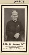 Abstract: Sterbebild von P. Bonifaz Kravogl O.T., gew. Pfarrvikar von Lengmoos und Novizenmeister Geb. am 05.04.1867 in Landeck, gest. am 12.02.1940 in Lana mit Foto