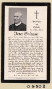 Abstract: Sterbebild von Peter Saltuari, emer. Dekan und Pfarrer von Mölten Geb. am 13.07.1867 in Truden, gest. am 10.03.1940 mit Foto