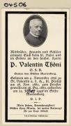 Abstract: Sterbebild von P. Valentin Thöni; O.S.B., Senior des Stiftes Marienberg Geb. am 09.11.1856 in St. Valentin a.d.H., gest. am 13.12.1940 im Stifte Marienberg mit Foto