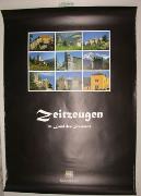 Abstract: Manifesto pubblicitario dell'associazione turistica "Meraner Land" con il titolo "Zeitzeugen im Land des Staunens", raffigurante nove castelli del Burgraviato, tra cui Castel Trauttmansdorff.