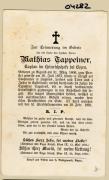 Abstract: Sterbebild von Mathias Tappeiner, Kaplan im Heinrichshof bei Bozen Geb. am 31.03.1806 in Algund, gest. am 18.02.1881 ohne Foto