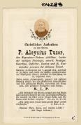 Abstract: Sterbebild von P. Aloysius Tuzer des Kapuziner-Ordens Jubiläus, Lector der heiligen Theologie, emerit. Prediger, Guardian, Definitor, Custos und fb. Examinator procura der Diöcese Trient Geb. am 07.08.1814 in Unterinn, gest. am 12.12.1881 in Bozen mit Foto
