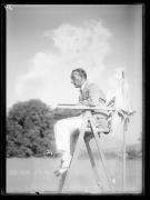 Abstract: Meran - Leichtatlethikwettbewerb am Untermaiser Sportplatz - Vermutlich ein Diskuswerfer