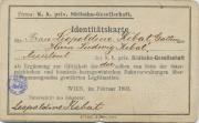 Abstract: Identitätskarte für Frau Leopoldine Kebat der k.k. priv. Südbahn - Gesellschaft (Eisenbahn)