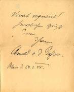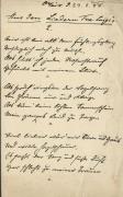 • Die 2. Strophe mit Datum vom 23.2.1888 sowie die 3. bis 5. Strophe vom 24.2.1888, jeweils mit einem an Rudolf Greinz gerichteten Gruß