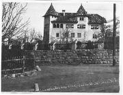 Abstract: Fotografia in bianco e nero con bordini bianchi. Merano - Maia Alta. Il residence Stifterhof, precedentemente di proprietà del barone Georg v. Ompteda. Costruito secondo i piani progettuali dell'architetto Adalbert Erlebach negli anni 1910-1911.