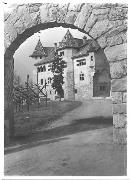 Abstract: Meran - Blick vom alten Magistratsgebäude über den Burghof zur Landesfürstlichen Burg. Vermutlich während den Abbruchsarbeiten für das neue Rathaus (Gemeinde) aufgenommen