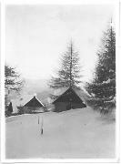 Abstract: Fotografia in bianco e nero con bordini bianchi. Lana. Stagione invernale. Case innevate a S. Vigilio. Sul retro immagine, una nota scritta a mano: "Dr. Frank, Dr. Singer" (probabili proprietari delle case).