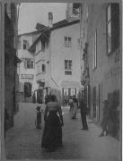 Abstract: Meran :Leonardo da Vincistraße ( Postgasse ). Das sogenannte Stingl - Bücher - Haus (?), welches 1904 niedergerissen und von Herrn Hornung umgebaut wurde. 1 Duplikat