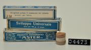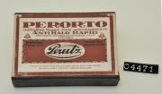 Abstract: 3-seitig blau bedruckte und im Negativdruck beschriftete längliche Faltschachtel mit zwei mit Korken verstöpselte, verschieden lange Glasröhrchen. Vierte Seite blau bedruckte Gebrauchshnweis.
