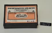 Abstract: Schwarz überzogene rechteckige Kartonschachtel mit unbelichteten Diapositiv-Platten 6½ x 9 cm der Firma Perutz Trockenplattenfabrik, München. Braunes Etikett. Unbelichtet. Original verschlossen.