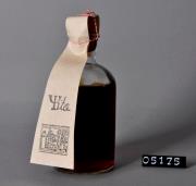 Abstract: Univi- Vierkantflasche, in der Grundfläche rechteckiger Querschnitt aus braunem Glas, abfallende Schulter und schwarzer geriffelter Schraubverschluss mit Plastikdichtung für Protonicum. Boden leicht eingewölbt mi Standring. Bodenprägung: Volumensangabe und Flaschentyp. Eigenpräparat der Stadtapotheke Peer. Grünes Etikett mit Logo der Stadtapotheke Peer in Brixen.