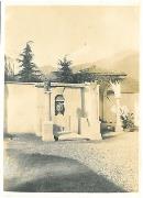 Abstract: Fotografia in bianco e nero con bordini bianchi. Merano. Cimitero comunale. Il monumento (tomba onoraria) dedicata a Theodor Christomannos.
