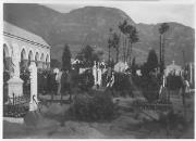 Abstract: Fotografia in bianco e nero. Merano. (Militärfriedhof) Cimitero militare. Le prime cinque tombe degli ufficiali nel nuovo cimitero.