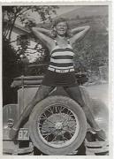 Abstract: Meran - Bürger - Appolonia Berta, vereh. Dr. Segalla, auf einem Auto bzw. Wagen. Momentaufnahme vor dem Larcher`schen Familienbad (Schwimmbad Malpertaus) in Obermais