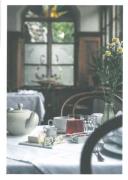 Abstract: Cartolina illustrata, a colori, formato verticale, inerente la Pensione Ottmanngut di Merano. Motivo: tavolo per la colazione, situato nel giardino d'inverno.