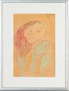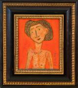 Abstract: Il dipinto rappresenta il busto di una donna con capo inclinato su uno sfondo rosso.