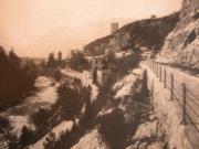 Abstract: Fotografia, b/n, (riproduzione) - Merano - Passeggiata Gilf; sullo sfondo, la Torre Polveriera (a destra). Didascalia: "Gilf Promenade".
