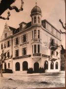 Abstract: Hotel Cafe Kronprinz (Principe) a Merano Fotografia, b/n, riproduzione, Hotel Cafe Kronprinz - Habsburgerstrasse Merano. Didascalia: "Hotel Cafe Kronprinz, oggi Pizzeria 'Kronprinz'". (Pizzeria Principe).