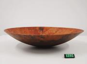 Abstract: Große flache Schaleaus Prettauer Zementkupfer gefertigt vom Südtiroler Künstler Laurenz Stockner, sie steht auf einem Punkt, innen hell rötlich, außen dunkel, wie geschwärzt. Am Boden die Signatur: LAURENZ P. K.