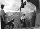 Abstract: 1 Fotografie, sw, Gossensass, Bergstation Sessellift, Motiv: 2 Frauen am linken Bildrand, 1 Mann mit Karwatte sitzt auf dem Sessel des Sessellifts. Lt. Schenker handelt es sich dabei um den Kurdirektor von Gossensass.