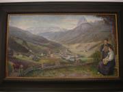 Abstract: Dipinto ad olio su legno con vista su Ortisei dalla casa Lusenberger "Jumbiërch" nel 1860.