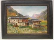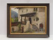 Abstract: Dipinto ad olio su cartone con vista sul cortile del doppio maso Larjac a Selva. La proprietà fu demolita quando vi fu trasferita la linea ferroviaria nel 1915.