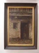 Abstract: Dipinto ad olio su tela. Raffigura una casa colonica medievale con un ingresso in stile gotico.