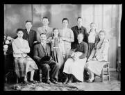 Abstract: Ripresa in esterno. Ritrato di gruppo, festeggiamento per l'ordinazione sacerdotale, bambini, donne, uomini, in prima fila il canonico Michael Gamper