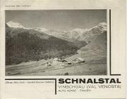 Abstract: prospetto illustrativo della val Senales in val Venosta con lista di alberghi del 1950