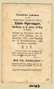 Abstract: Sterbebild von Alois Sprenger, Benefiziat zu St. Justina auf Berg in Eppan Geb. am 25.04.1779, gest. am 11.12.1861 ohne Foto