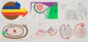 Abstract: Disegni realizzati con colori ad olio corredati da scritte e segni grafici a matita, pastelli ad olio e pennarello su carta.