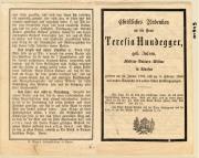 Abstract: Sterbebild von Teresia Hundegger geb. Insam, Medizin-Doktors-Witwe in Klausen Geb. am 25.01.1790, gest. am 18.02.1864 ohne Foto