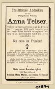 Abstract: Sterbebild von Anna Telser Geb. in Bozen, gest. am 11.08.1880 in Brixen im 73. Lebensjahr ohne Foto