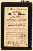 Abstract: Sterbebild von Maria Kleon geb. Pixner, Hütterbäuerin in Kuens Gest. am 27.08.1890 in Kuens im Alter von 65 Jahren ohne Foto