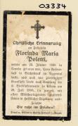 Abstract: Sterbebild von Florinda Maria Poletti, Birchabruck Geb. am 23.01.1888 in Coredo (Trentino), gest. am 28.07.1908 in Aldein ohne Foto