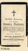 Abstract: Sterbebild von Veronica Mairhofer Gest. am 20.11.1905 im Aler von 34 Jahren ohne Foto