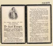 Abstract: Sterbebild von Dr. Karl Lueger, Bürgermeister der k.k. Reichshaupt- und Residenzstadt Wien, Gründer und Führer der christlichsozialen Partei und Vorkämpfer des christilichen Volkes in Österreich Gest. am 10.03.1910 mit Foto