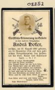 Abstract: Sterbebild von Andrä Hofer Geb. am 27.11.1887, gest. am 16.11.1914 in Galizien mit Foto