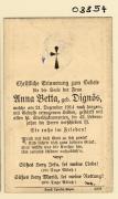 Abstract: Sterbebild von Anna Betta geb.Dignös Gest. am 21.12.1914 im 42. Lebensjahr ohne Foto