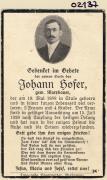 Abstract: Sterbebild von Johann Hofer, Marxbauer Geb. am 19.05.1888 in Stuls, gest. am 15.07.1928 mit Foto
