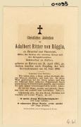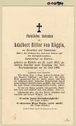 Abstract: Sterbebild von Adalbert Ritter von Röggla zu Ährenthal und Thonheim, Ritter des Ordens der eisernen Krone mit der Kriegsdecoration, Gutsbesitzer in Kaltern Geb. am 21.04.1811 in Kaltern, gest. am 14.06.1882 in Kaltern ohne Foto