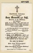 Abstract: Sterbebild von Anna Morandell geb. Hakl, Bäuerin zu St. Nikolaus bei Kaltern Gest. am 09.10.1888 im Alter von 85 Jahren ohne Foto Sterbebild von Anna Dissertori geb. Morandell Geb. am 13.12.1831, gest. am 13.08.1883 ohne Foto Sterbebild von Franz Morandell Geb. am 07.11.1835, gest. am 22.09.1885 ohne Foto