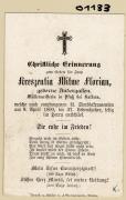 Abstract: Sterbebild von Kreszentia Witwe Florian geb. Andergassen, Müllermeisterin in Pfuss bei Kaltern Gest. am 08.04.1890 im Alter von 37 Jahren ohne Foto