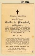 Abstract: Sterbebild von Emilie von Morandell zu Westerhofen Gest. am 08.08.1890 in Kaltern im Alter von 54 Jahren ohne Foto