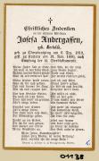 Abstract: Sterbebild von Josefa Andergassen geb. Bertoldi Geb. am 06.12.1819 in Oberplanitzing, gest. am 21.11.1890 in Kaltern ohne Foto