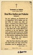 Abstract: Sterbebild von Rosa Wwe. Karbon geb. Profanter, Stillhoferin Geb. am 21.09.1874 in Kastelruth, gest. am 21.06.1954 ohne Foto